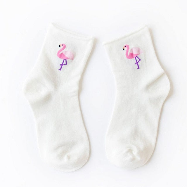Women Cotton Socks 2018 New Fashion All seasons Cartoon Flamingo Pattern For Ladies Trend Harajuku Loose Socks